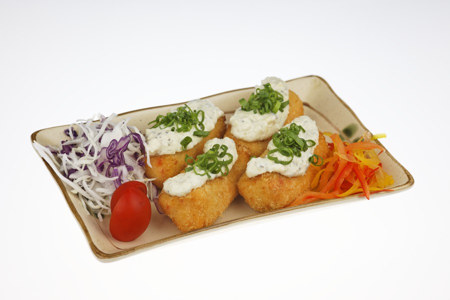 крабавая масса,микс из капусты,помидор черри,соус тар-тар