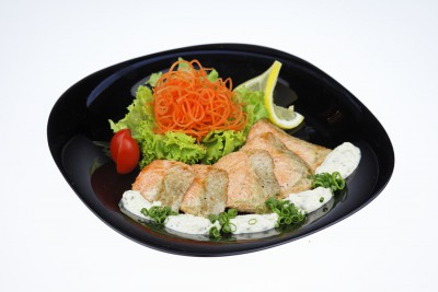 тирговая креветка,гребешок,лосось,брокколи,цукини,перец,лук,соус Унаги