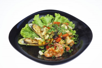 жареные мидии,креветка,гребешок,кальмар,сладкий перец,лук морковь,брокколи,соук унаги